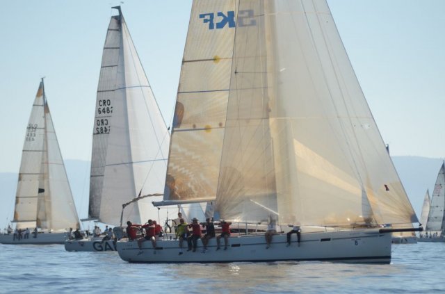 A punim jedrima krenulo se iz viškog akvatorija. U 9 sati je bilo 12 do 14 čvorova sjeverozapadnjaka koji je floti napunio jedra, no s dosta marete i sumaglice. U tim uvjetima najbolje je startala Marina Kaštela Joška Berketa, no kada je u svoje ogromno jedrilje vjetar uhvatio Shining Umago-maxi, te odmah jurnuo ispred svih. Ali pravo iskušenje i testiranje živaca tek je slijedilo. Jer flota od 144 jedrilice koja je po tramontani krenula iz Visa, sa zebnjom je čekala ulazak u Splitska vrata gdje ih je po prognozi čekala bonaca.